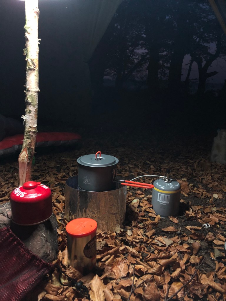 Appetitten på udelivet var intakt. Vi drog afsted og slog en camp op. Nicolai brillierede i køkkenet og jeg sørgede for lejrens øvrige dele. Vi planlagde at “bestige” Kløverbjerget i ly af natten, for at kunne sidde og kikke ud over dalen mens solen stod op. Vandringen var kort og noget svedig, men op kom vi og lagde os på klippen med min “Fjell Duken- hunter” over os (en genial kombination af et tæppe og et stort regnslag). Hurtigt faldt vi i søvn og vågnede først da lyset tittede frem. Primus blev tændt og kaffen brygget. Vi blev ikke snydt for oplevelsen. Da solen slap horisonten tog vi klatreselen på og rapellede ned af klippen. Nicolai fik lært selen at kende, de vigtige knob, bremsen og selve håndværket. Sikkert kom han ned af klippen.