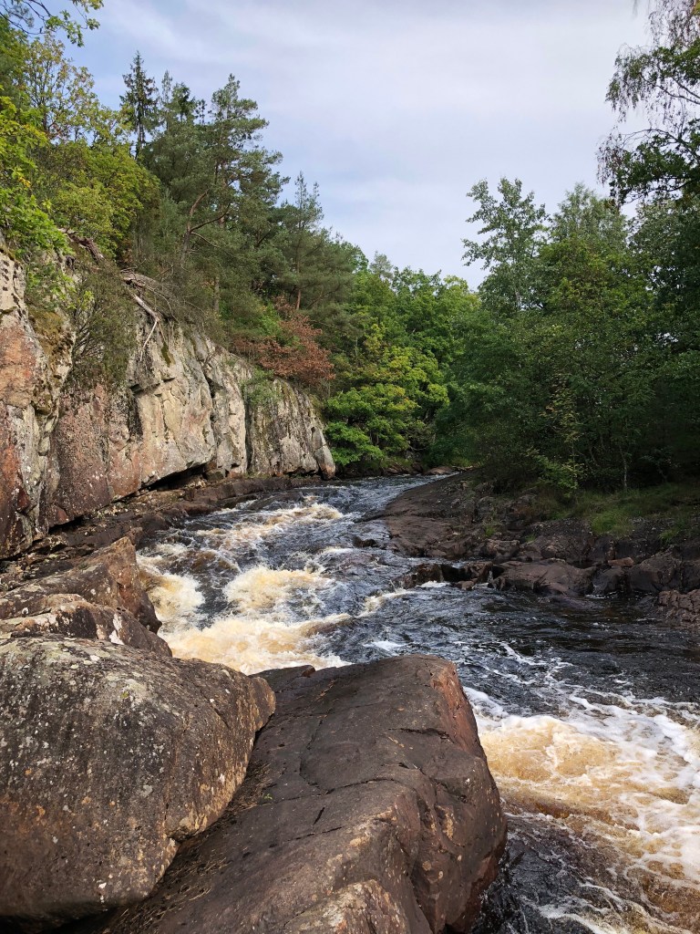 Vi vandrede til Danske Fallet. Nød frokosten og fortsatte gennem tæt birkeskov og tørvemose. Bilen stod klar og vi kørte sydover til Hallands Åsen. Her skulle Pack-raften i brug og han skulle lære at samle og adskille båden og naturligvis lære at håndtere den i vandet.