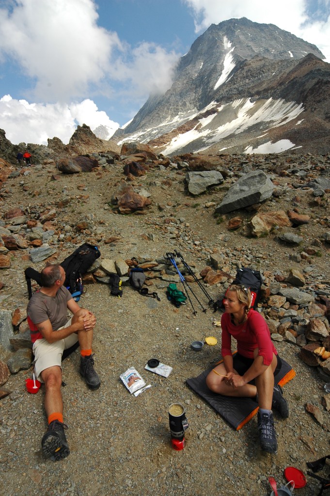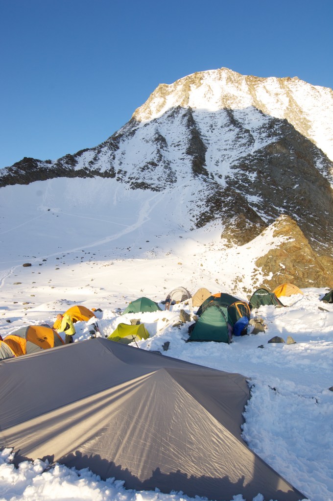 Vi tog lidt ekstra tøj på og fortsatte op til 3300 meter. Her skulle campen være. I løbet af natten (kl 02.00) ville vi klatre op til Refuge de L’Aiguille du Goûter og fortsætte af normalruten over Col du Vallot og dernæst toppen.