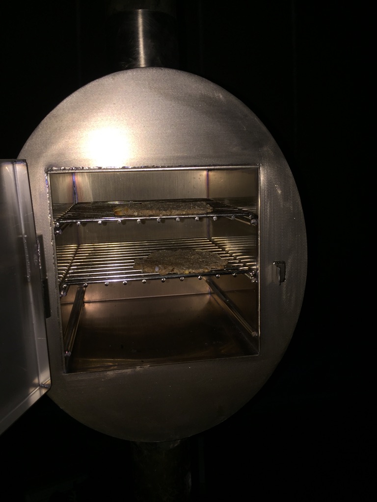 Bageovnen virker også rigtigt godt- denne placeres ca 50 cm op af skorstenen. Den bager snildt 2×4 boller på ristene.