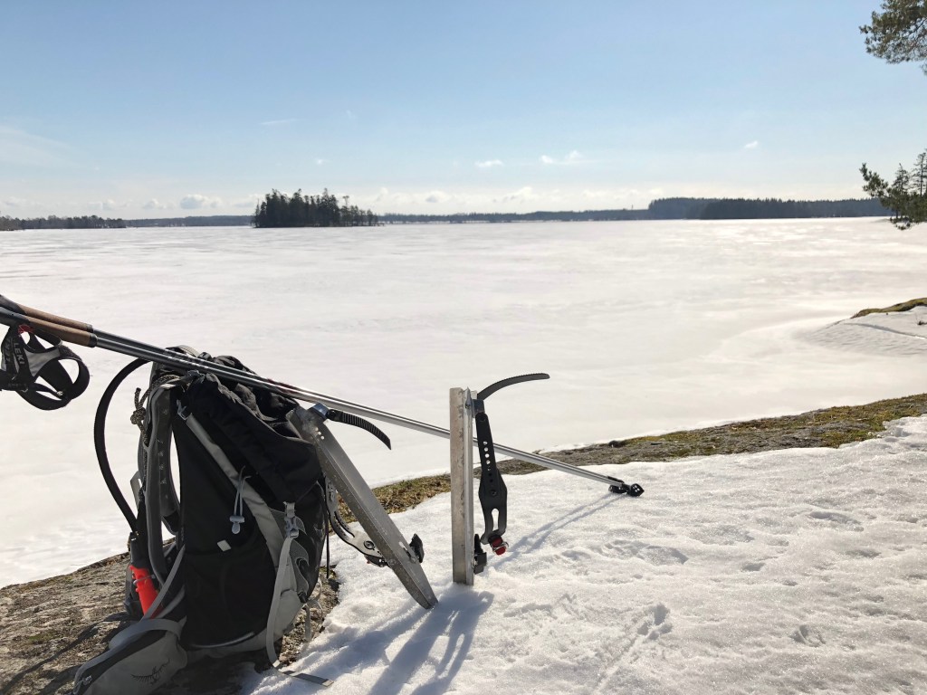 Min viv og jeg tog på en forlænget weekend tur (Februar 2018), for at køre lidt langrend. Ulricehamn i Sverige har et Vasalopp Center, som har udmærkede spor. Som en indskydelse inden afgang, tog vi vores langtursskøjter med i bilen, med de tilhørende issyle som hænger om halsen. Issylene bruges hvis man kører gennem isen og skal op igen. Dertil lidt skiftetøj, en rygsæk, termokande og et redningsreb. Igennem AirBnB fandt vi en lejlighed liggende ud til en større sø, ikke langt fra Ulricehamn og endnu tættere på Annelund. Det skulle vise sig at søen var meget velegnet og isen var tyk nok.