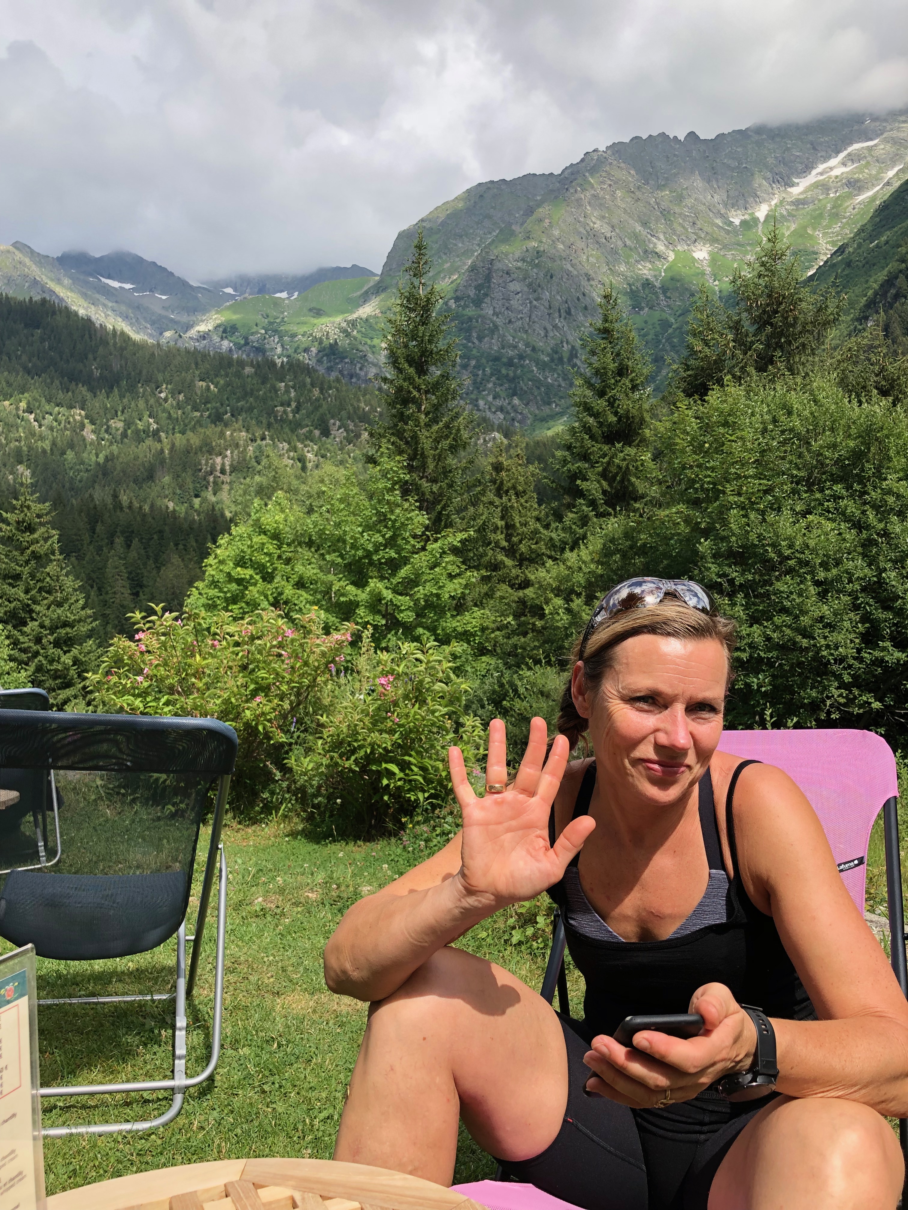 Vi ramte en lille Alpe Cafe og slog os ned med en Café Latte og en lille tærte med is og blåbær. En perfekt trekkingdag i Alperne var ved sin afslutning. Netop her kan vi lære en del af denne region af Frankrig: Sørg for at nyde livet og glem aldrig en god kaffe med kage og tilhørende Genipi snaps.