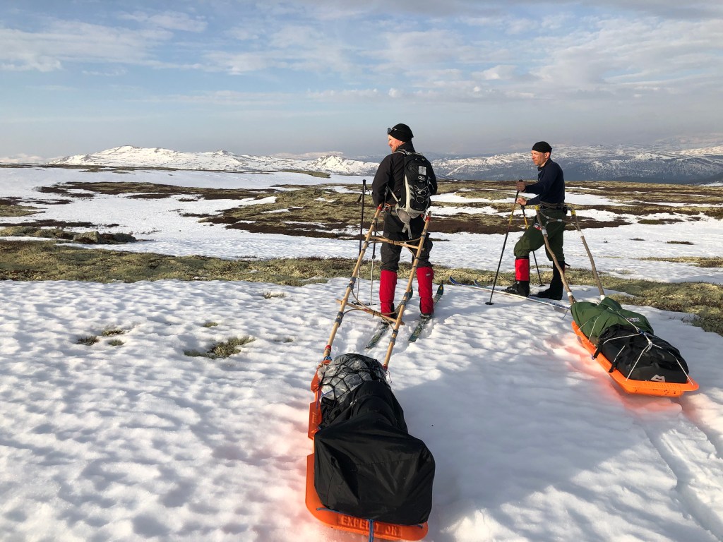 På en tur i 2002-ish, havde vi besluttet at indkøbe pulke til en fornuftig pris. Dengang kostede de i omegnen af 6-700 kroner. Dem trak vi med snore, hvilket også fungerer upåklageligt, indtil du kører nedad eller traverserer på en skråning. Det er i forvejen voldsomt svært at køre i terræn med langrends eller tur-ski, når jeg dertil lægger en løseligt ophængt pulk… ja så er det et selvmål. På nedkørsler kommer pulken bagfra og takler dig i ankelhøjde og på traverser rutcher den ned mod dalen og trækker dig derefter.