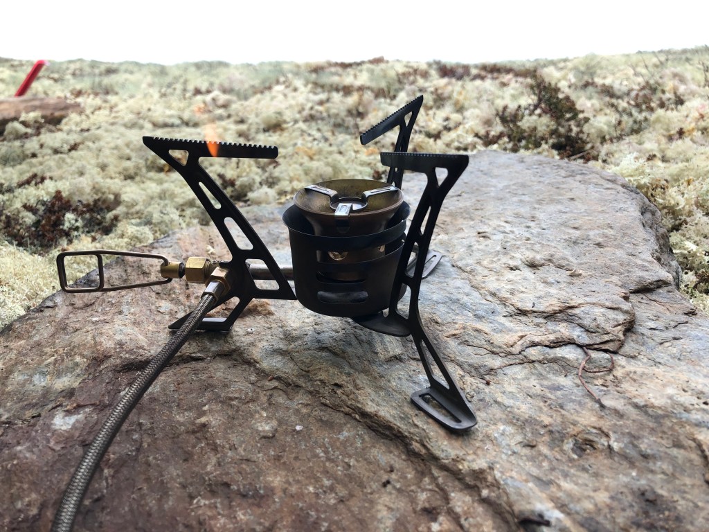 Jeg havde en nyere Primus med, i titanium, som også er yderst effektiv og larmer lidt mindre. Nu gik jeg i gang med at lave et stort service på den. Primus laver diverse Youtube film over fremgangsmåden. Den er simpel, specielt når sælgeren står i en varm kælder, i T-shirt og får alt til at være legende let. Herude i fjeldet er det en anden sag, specielt i vinteren og med stive fingre. Men jeg fik skilt skidtet ad og samlet det igen uden at miste noget i processen. Igen måtte brænderen forvarmes og i gang med sit arbejde. Efter få minutter tog fanden ved den og jeg skal love for at den leverede varme… og et inferno af flammer. Et hurtigt vred på ventilen og brændstoftilførslen blev afbrudt. Brænderen blev smidt i sneen for hurtig afkøling og derefter kunne jeg konstatere at jeg ikke havde strammet dysen nok, så der var sket en lækage da dysen blev rigtig varm. Nå… så længe man er i live- lærer man noget nyt.