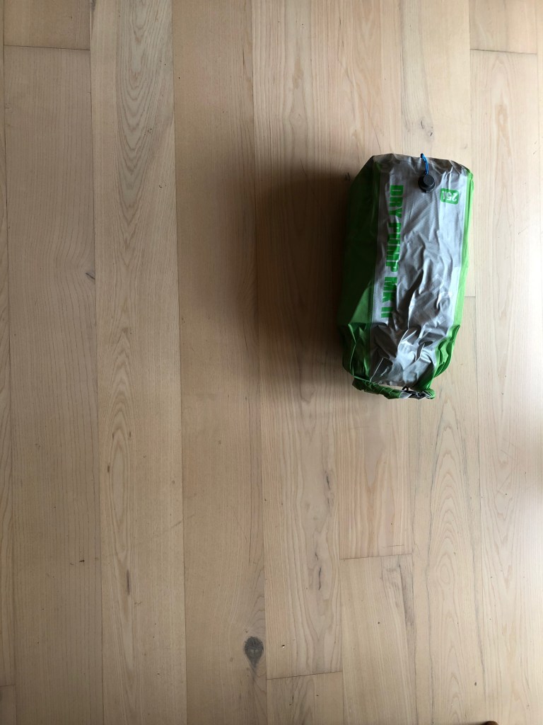 Jeg har valgt et system fra Restrap- selve remsystemet. Der medfølger en 15 liters dry-bag. Men jeg har udskiftet denne med en drybag fra JR Gear- da den samtidig fungerer som pumpe for fruens liggeunderlag. Dertil kommer den øgede volumen på 25 liter (som jeg slet ikke bruger fuldt ud)