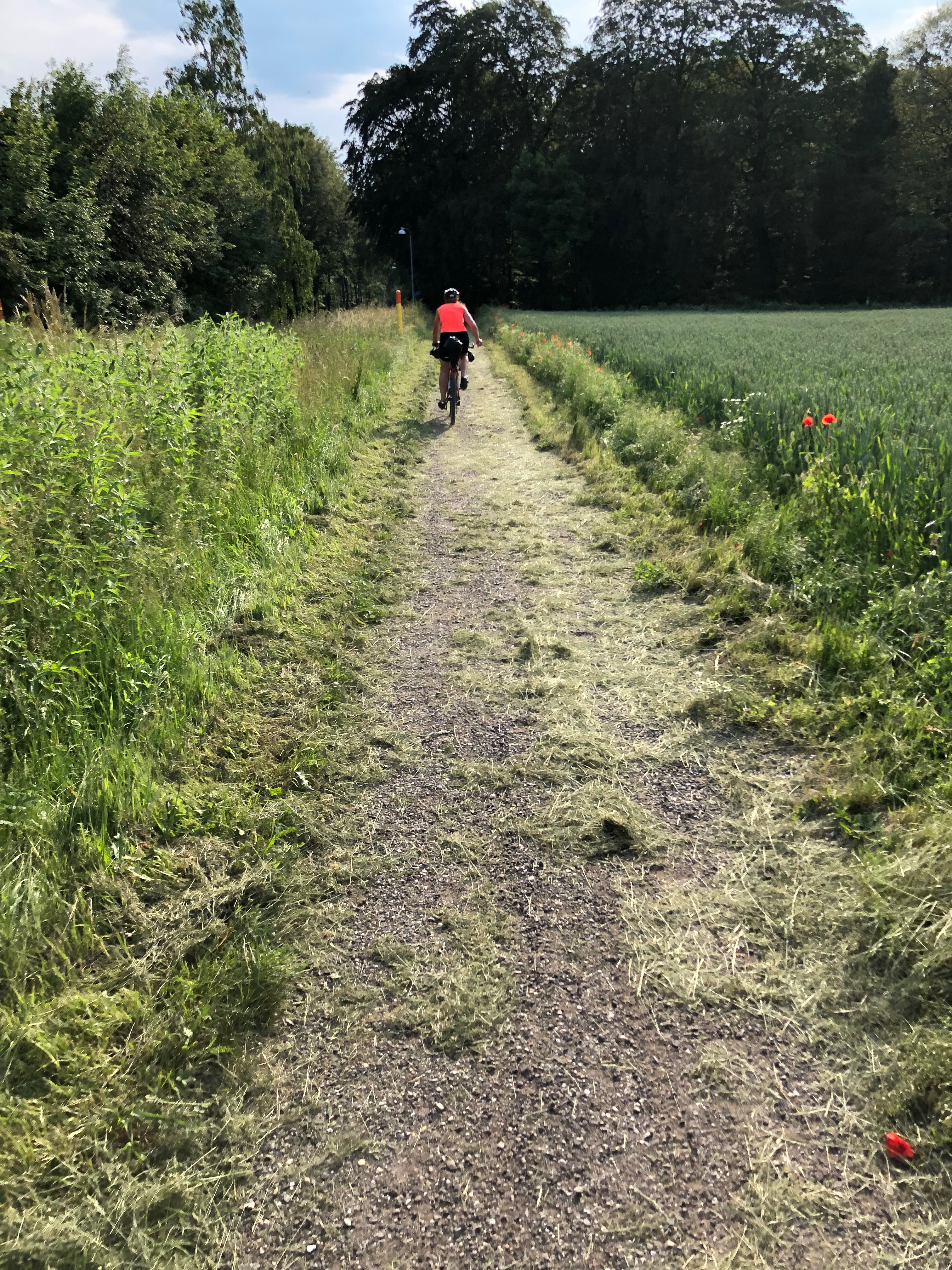 Jeg har netop været igennem hendes tøj for at frasortere lidt stumper, men jeg var egentlig godt tilfreds med hendes valg. Jeg måtte endda tilføje en tynd hue og en halsedisse. Vores fokus er på uld, der ikke lugter specielt dårligt, selv efter en lang dags arbejde. Samtidig varmer uld i kulden og afkøler i solen (når man cykler).