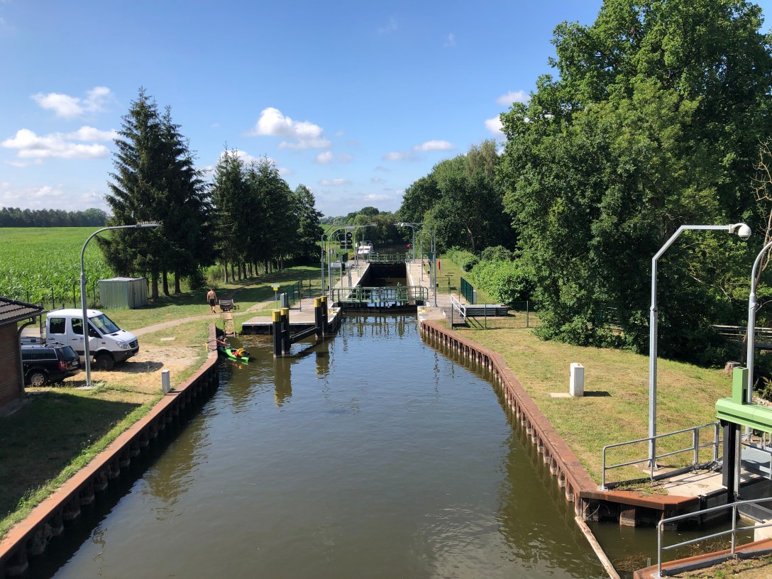 Vi stoppede ved en kanal og tog fem minutters pause, ikke fordi vi havde et behov, men der var muligvis underholdning i vente. En båd lå og ventede på at komme igennem slusen og et par i kajak havde store problemer med at få deres dobbelte kajak ud af vandet. Muligvis ville få et billigt grin…. men det udeblev desværre. Men guderne ønskede vist at give os en lille lærestreg: “Man skal ikke fryde sig over andres uheld”. Der ventede os en ordentlig lussing lige om hjørnet!