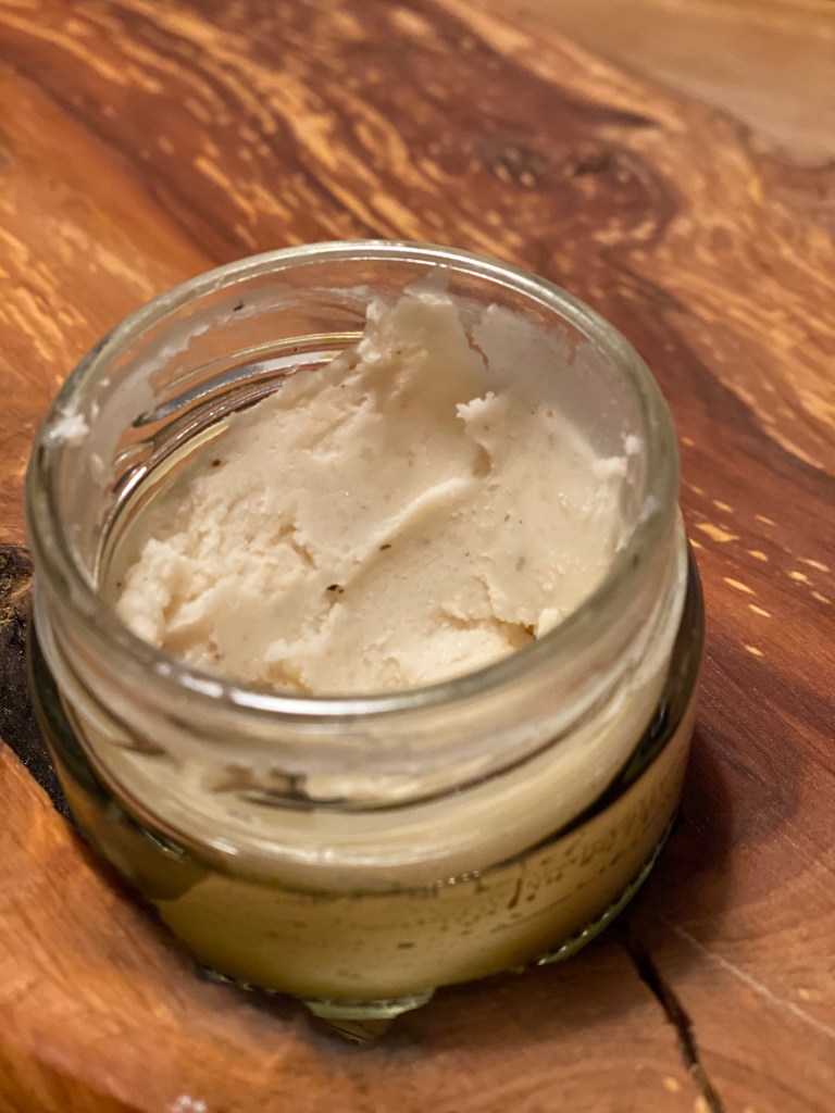 Jeg smuttede lige forbi hjemmet og fandt lidt bivoks og lidt mandelolie. Jeg fik tanken om at lave noget sårsalve og afprøve det- en slags naturmedicin. Jeg fandt et lille glas samt olien blandt konens ansigtscremer. Da jeg igen stod i campen fandt jeg harepiks på nogle grantræer. Glasset blev sat på ovnen og 1 del harepiks blandet med 1 del bivoks blev smeltet sammen. Af med blandingen og herefter blev det blandet med to dele olie. Nu kunne blandingen afkøle og derefter på såret.