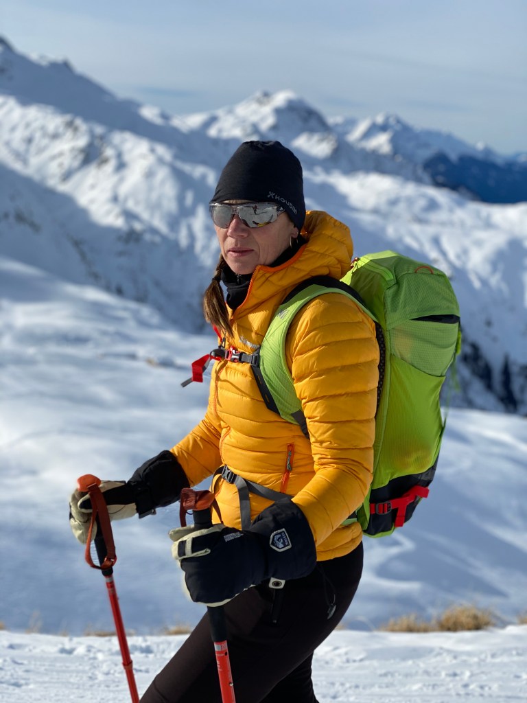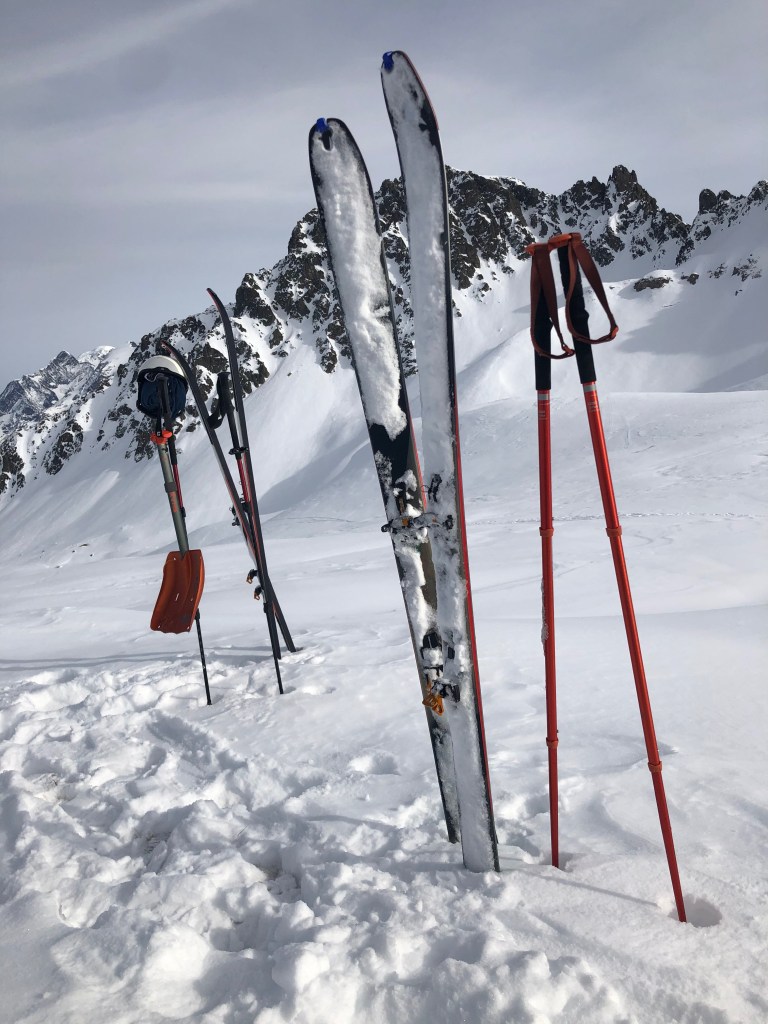 Jeg havde investeret i nye ski, støvler og randonee bindinger til min kone. Det særlige ved randoneebindinger er, at hælen kan frigøres. Således er det muligt at bruge skiene en del a la langrend. Under skien er der klistret “skind”- således at hårene er bagudrettet. Hermed er det muligt at glide frem, mens bag-glid ikke er muligt. Når du når til toppen (eller der hvor du vil køre ned fra), hives skindene af og bindingen drejes sådan at hælen igen kan låses. Nu er ski, binding og støvle transformeret til en vanlig alpin downhill løsning. Støvlerne minder også om den klassiske alpinstøvle. Stadig plastic- men med mulighed for at låse støvlen op til en “gå-tilstand”.