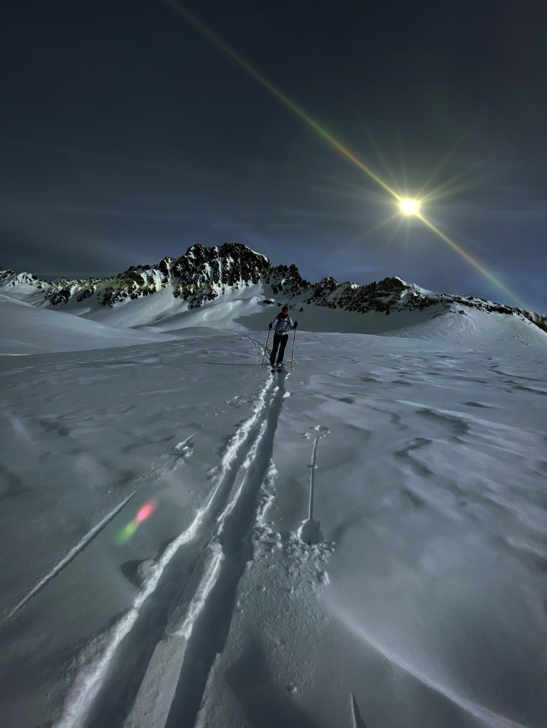 Der er, trods anstrengelserne, flere der dyrker ski-randonee. Men alligevel får man en fornemmelse af, at have hele bjerget for sig selv.