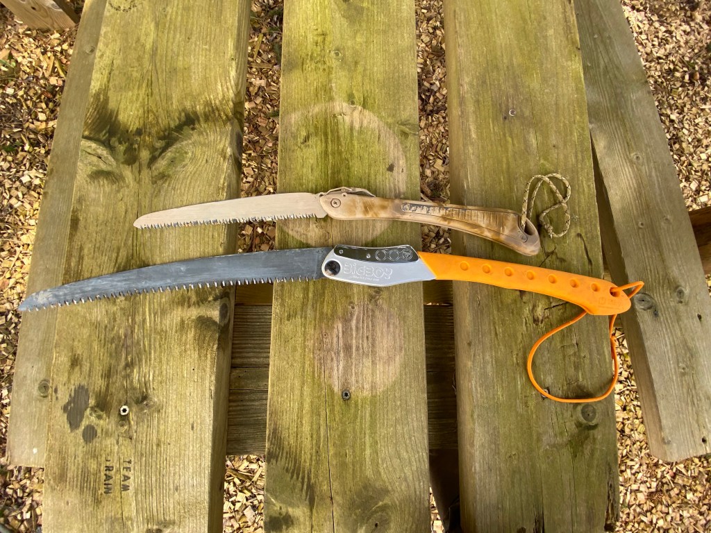 Igen er her tale om to priser i hver sin ende. Jeg har Silky BigBoy 2000 på 450 gram og en savklinge på 36 cm. Jeg lavede en lille test på et stykke tømmer ø100mm- det tog 15 sek. Prisen lander på kr. 600.- Bla har Bushcraftbutikken den på lager. Saven klarer de fleste opgaver i vildmarken. En sav der ligger godt og sikkert i hånden. Den er effektiv, men dyr.