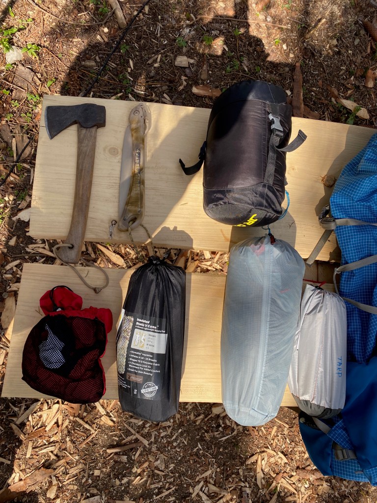 Saven og øksen er ren luksus og ikke strengt nødvendige. Men det er skønt at have med på tur, når der er tid til bålhygge og dermed kommer begge redskaber flittigt i brug. Skulle jeg vælge en af delene, ville jeg snuppe saven. Min kniv kan flække brænde, hvis bruger den efter baton-princippet. (find en god kæp til at slå på knivens blad- google er din ven!)