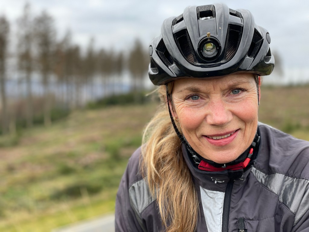 Det var også tilfælder denne dag. Alle tanker om manglende tøj blev skubbet til side og erstattet af en indre varme fra hårdtarbejdende muskler. 11% stigning var ikke noget mine lunger havde overskud til. Selvom jeg forgæves forsøgte at hænge på min hustrus forrygende tempo, måtte jeg bide i puden og smage blod…. samt skifte til letteste gear og arbejde langsomt op af bakken. For at gøre ondt værre, var det netop inde i byen og alle havde åbenbart en aftale med præsten- så jeg måtte bide det knuste ego i mig og finde en passende grimasse. Heldigvis fladede det lidt ud og i øvrigt havde jeg også kortet- så et kort øjeblik efter var jeg igen på siden af min hustru. Jeg kunne kun fortælle hende at det sgu trak søm ud. Vi ville møde flere bakker denne dag og endda em kort opstigning på 18%…. men det gik alligevel noget bedre.