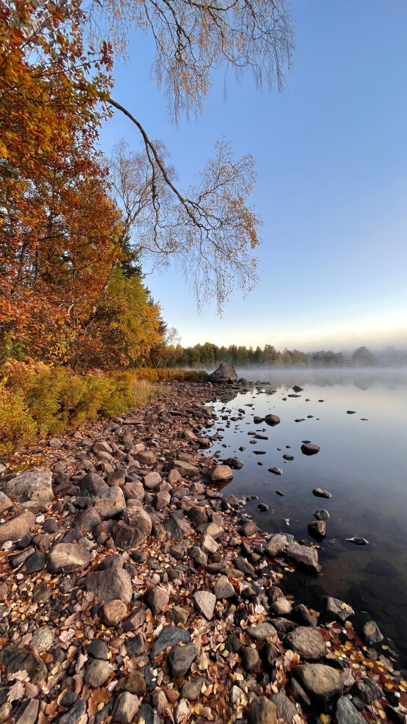 Skoven var trukket i efterårsdragten og med sine mange smukke farver satte den en perfekt ramme om søen.