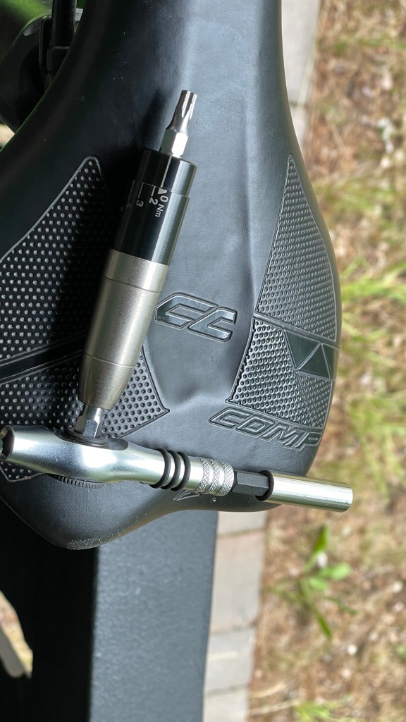 Allerede få minutter efter ankomst, gik jeg i gang med at samle og justere cyklerne. Det er med til at forherlige enhver tur, når alt på cyklen fungerer og man ved at alt er gennemgået og spændt sammen med det rigtige moment. Jeg har altid en lille momentnøgle med fra Topeak, det er en fortsats hvor jeg kan sætte de forskellige bits ind- og spænde alle nødvendige skruer med den rigtige kraft. Særligt vigtigt er det for mig, da jeg har en tendens til at stramme skruer for hårdt. Forsatsen fylder ikke alverden og den finder altid plads i mit medbragte værktøj.