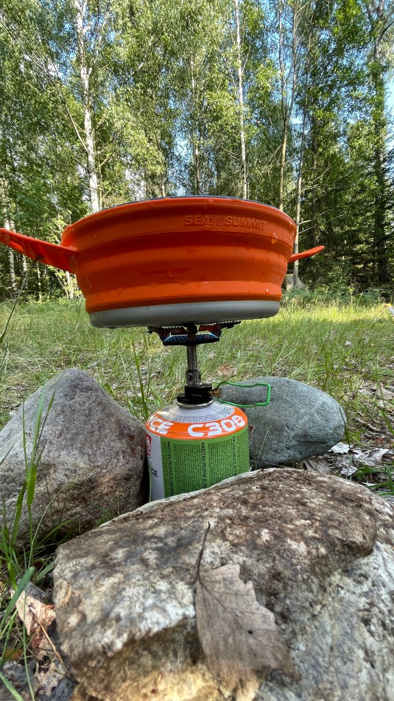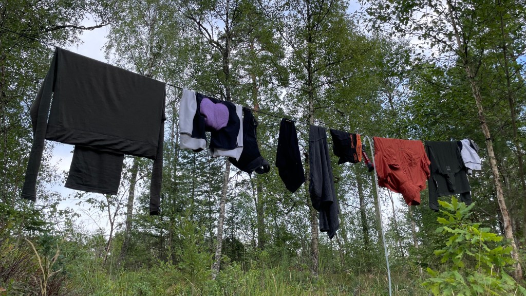 Som forventet stod vi op til regnvejr. Ingen af os havde den store hast med at komme ud af soveposen. Vi pakkede soveposer, indertelt og liggeunderlag ned uden at komme ud af teltet. Ligeledes skiftede vi til “arbejdstøj” og til sidst lavede vi morgenmad.