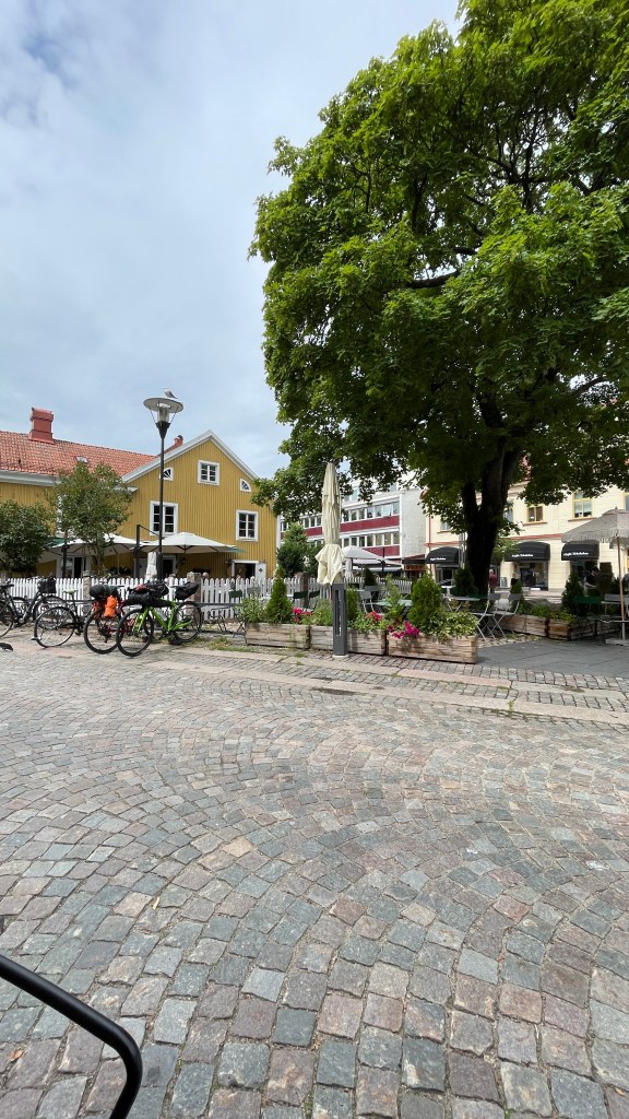 Morgenen bragte tørvejr men en lidt koldere luft. Vi startede med lange bukser og jakker. Der var stilhed i lejren og vi fik pakket sammen relativt hurtigt efter morgenmaden. Vi satsede på at nå Växjö til frokosttid. Hermed kunne vi indhente nogle velsmagende kalorier. Turen dertil bragte os igennem kilometervis af smukke grusveje, skove og indimellem nogle fantastiske udsigter. Der var en del “dårlig” underlag og cyklerne fik mange tæsk. De tæsk vandrede op gennem carbon forgaflen og direkte i hænderne. Trods mange timer på gruskværnen hvert år, er det muligt at få ømme hænder/håndled. Derfor skiftede vi ofte greb eller rystede hænderne lidt.
