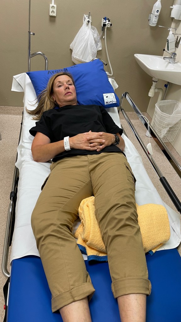 Efter et bad tog jeg kontakt til vores forsikrings selskab (vi har en udvidet skadesdækning med tilknyttet akuthjælp/sundhedsfaglig koordinator.) Det viste sig at være en kæmpe hjælp. Kort tid efter var vi i bilen på vej til Ljungby hospital. Vi blev ekspederet hurtigt og Vinni (min hustru) blev oprettet i deres system. Som sygeplejersken sagde:”Nu er du oprettet i vores system, så næste gang du kommer til skade i Sverige, har vi dine oplysninger klar!”. Efter to timer var vi atter på vej mod hytten. Vi besluttede at køre til Danmark, idet der jo ikke længere var basis for en cykeltur eller en tur med rygsæk. Jeg gav en update til Hr. P…. (ejer af sommehuset) og meddelte at vi lukkede huset ned og kørte til Danmark. Når det gælder recovery og genoptræning ville det være nemmere at være hjemme.