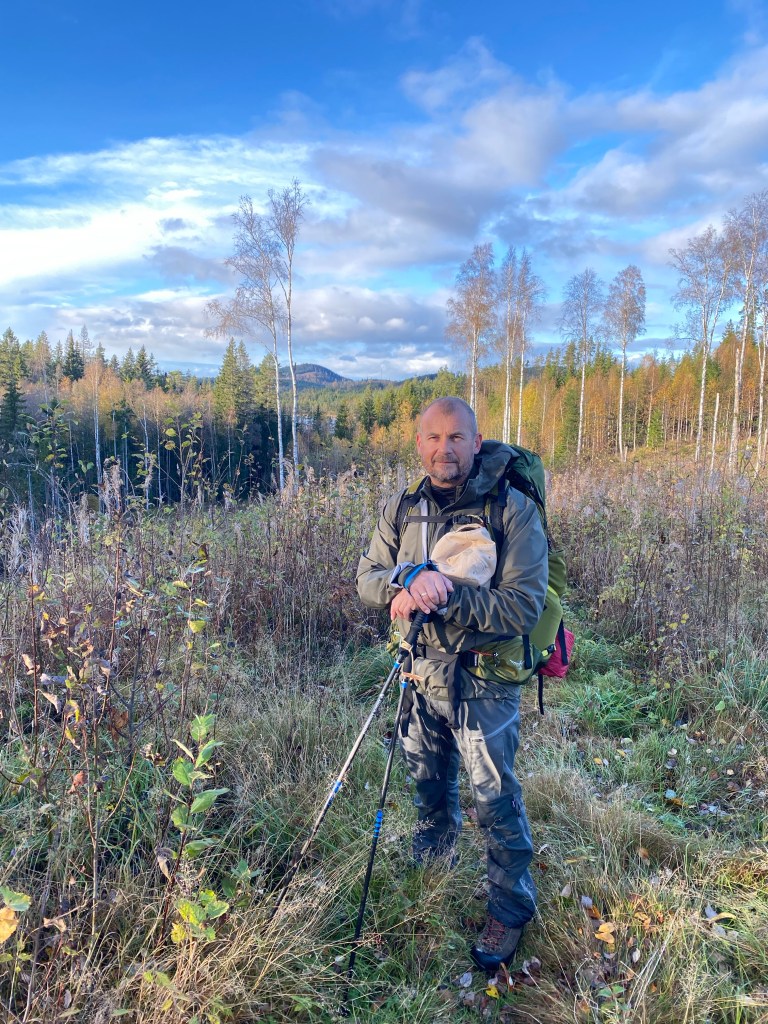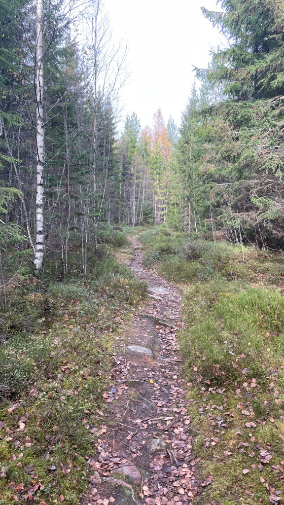 Vi klædte om ved bilen og ved 15 tiden var vi klar til hiken. Jeg mindede hustruen om rytmen: Vi går i 50 minutter og derefter en pause på 10 minutter. Naturligvis +/- nogle minutter, skulle der være et oplagt sted at holde pausen. På vandreture i kuperet terræn, ujævne stier, fjeld osv., er det ikke afstanden der afgør hvornår vi holder pause, men tiden vi har arbejdet. Netop 50/10 opskriften syntes vi virker rigtigt godt for os. Vi når at finde rytmen og pausen er tilpas lang til at drikke vand og spise en snack, rette på rygsækken eller snøre støvlerne anderledes. Således gik vi 3 “rul”. Hvor stien tillod os at gå side om side, gik vi og hyggesnakkede. Jeg kunne tydeligt mærke at vi var længere nord på og dags temperaturen var faldet fra 15 til 5 grader. Luften føltes rigtigt frisk og jeg fik en fornemmelse af, at der var “energi” i hvert åndedrag. Vinni (hustruen) så også ud til at nyde både den friske luft og få brændt noget krudt af. Hun har lidt svært ved at sidde stille og det var tydeligt at arbejdet gjorde hende godt. Jeg spurgte ind til hendes velbefindende, særligt med fokus på den veloverståede knæoperation. Men efter en enkelt spørgerunde kunne hun melde alt vel og vi talte ikke mere om emnet resten af turen.