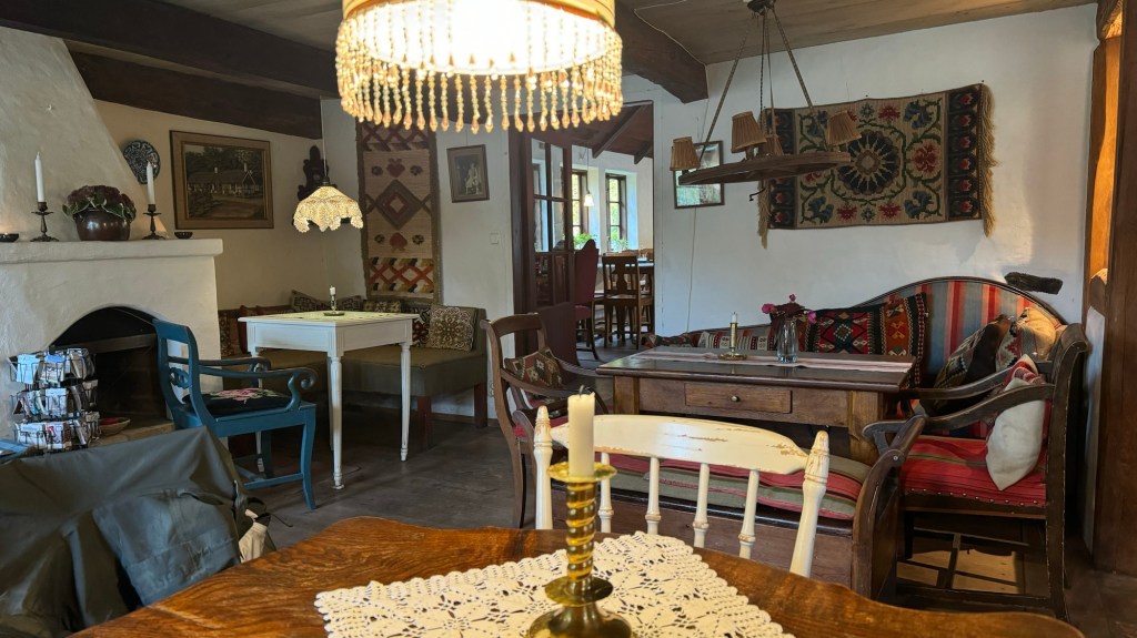 Det var sæsonens sidste åbningsdag. Vi bestilte straks æblekage og kaffe. Vi sad i de gamle møbler og lod stemningen trække os tilbage i tiden. Et lille scoop af en oplevelse.