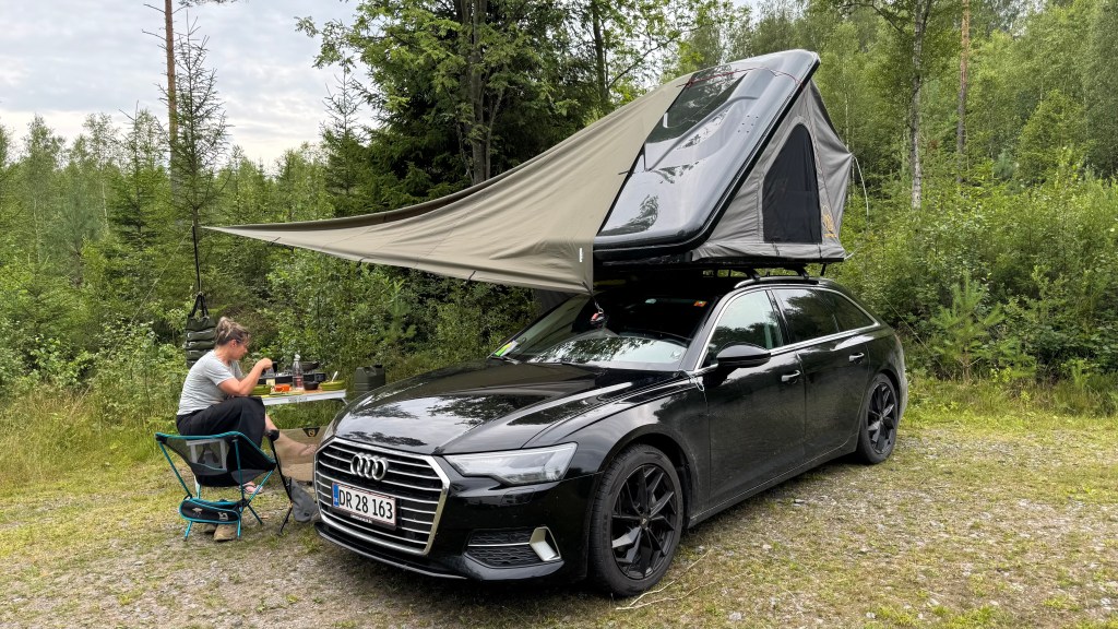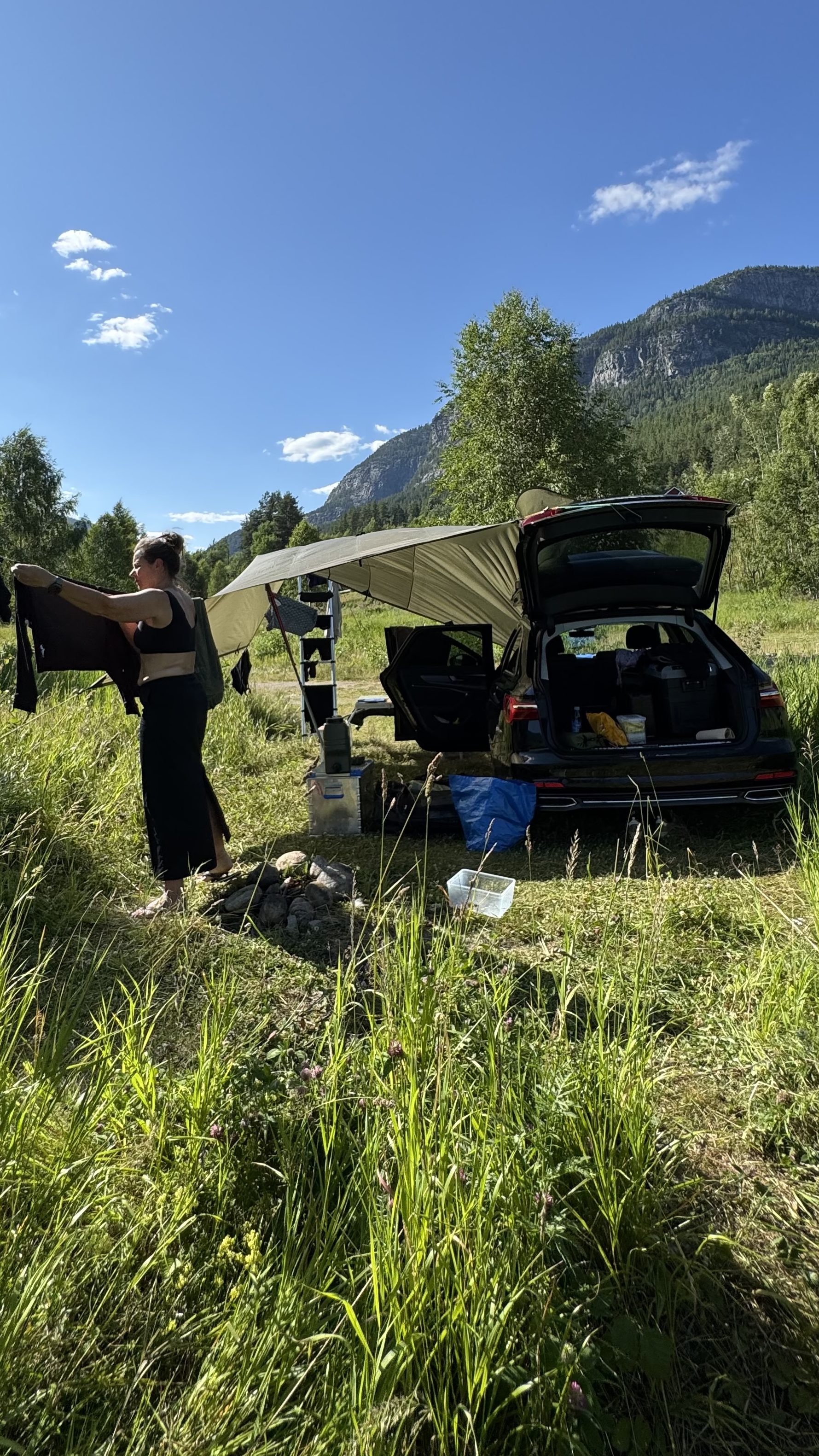 Det var ikke let at finde et egnet sted ved søen, så vi måtte lidt væk. Det endte med en vendeplads på en skovvej. Regnen var stilnet af og hurtigt kom campen i stank. Først ved 22 tiden spiste vi aftensmad. Næste morgen vågnede vi igen op til høj sol og varmt vejr. Et andet hold i autocamper havde fundet samme plads i løbet af natten.