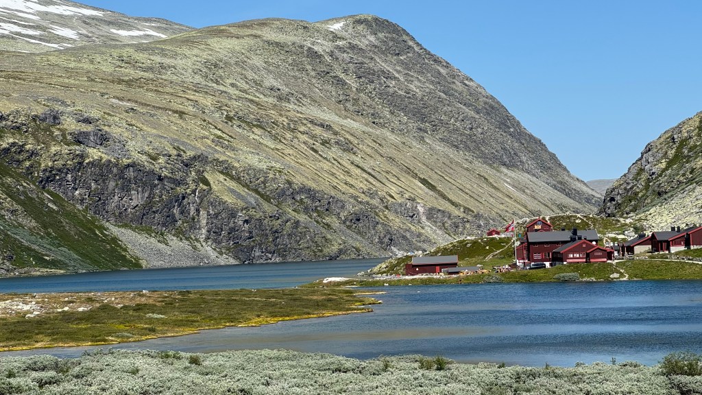 Vi kørte op af de velkendte snoede veje, i zig-zag. Ved hvert 180 graders sving blev farten taget af, så svinget efterfulgt af acceleration. En herlig måde at køre på, særligt når små 300 hk venter på et spark i røven 😁! Lige efter Mysosæter skulle der betales for indgangen. 50 norske kroner. Det ville jeg gerne betale for at bidrage til områdets vedligehold og for at spare 4 kilometers gåtur hver vej.