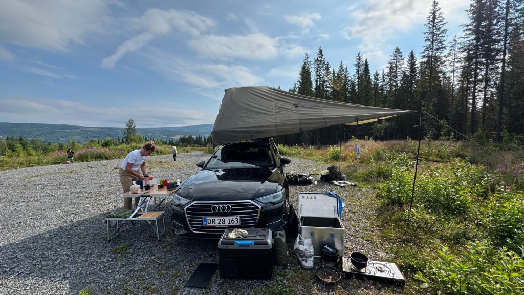 Jeg vågnede til sædvanlig tid. Med meget lidt elegance, klatrede jeg over min hustru og ned af stigen. Jeg kværnede kaffe og fandt ruten til Mysusæter, hvor vi ville parkere og gå ind i Rondane Nationalpark. Ruten blev sendt til bilens kørecomputer, fra mobilen.