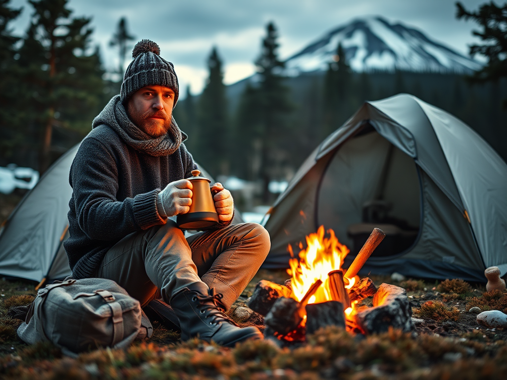 Jeg havde planlagt en tur til Norge. Jeg havde set billederne for mig: “Liggende ved siden af bålet med en kop kaffe i hånden. Teltet slået op i lyngen og bålkedlen snurrende med næste kop kaffe. Uldsweater, hue, fjeldbukser og varme læder vandrestøvler. I baggrunden fyrreskov samt et fjeld med nyfalden sne på toppen”. Noget i denne stil (AI- genereret):